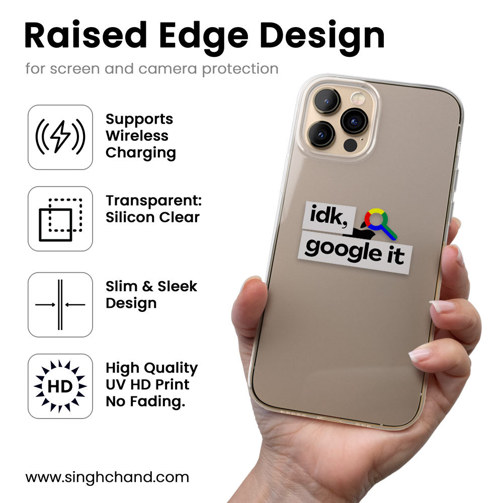 Enhance your phone’s style and protection with the SINGH & CHAND I don't know google it quote Silicone Phone Case. Designed for those who appreciate minimalism and durability, this case offers a slim and sleek design that fits comfortably in your hand. Made from premium quality silicone, it provides robust protection while showcasing your device’s original look. The high-quality UV HD print ensures vibrant, long-lasting colors that won’t fade, keeping your phone case looking fresh day after day. Compatible with all phone models, this transparent silicone phone case combines functionality with a timeless design, making it a perfect choice for those who value both style and protection.