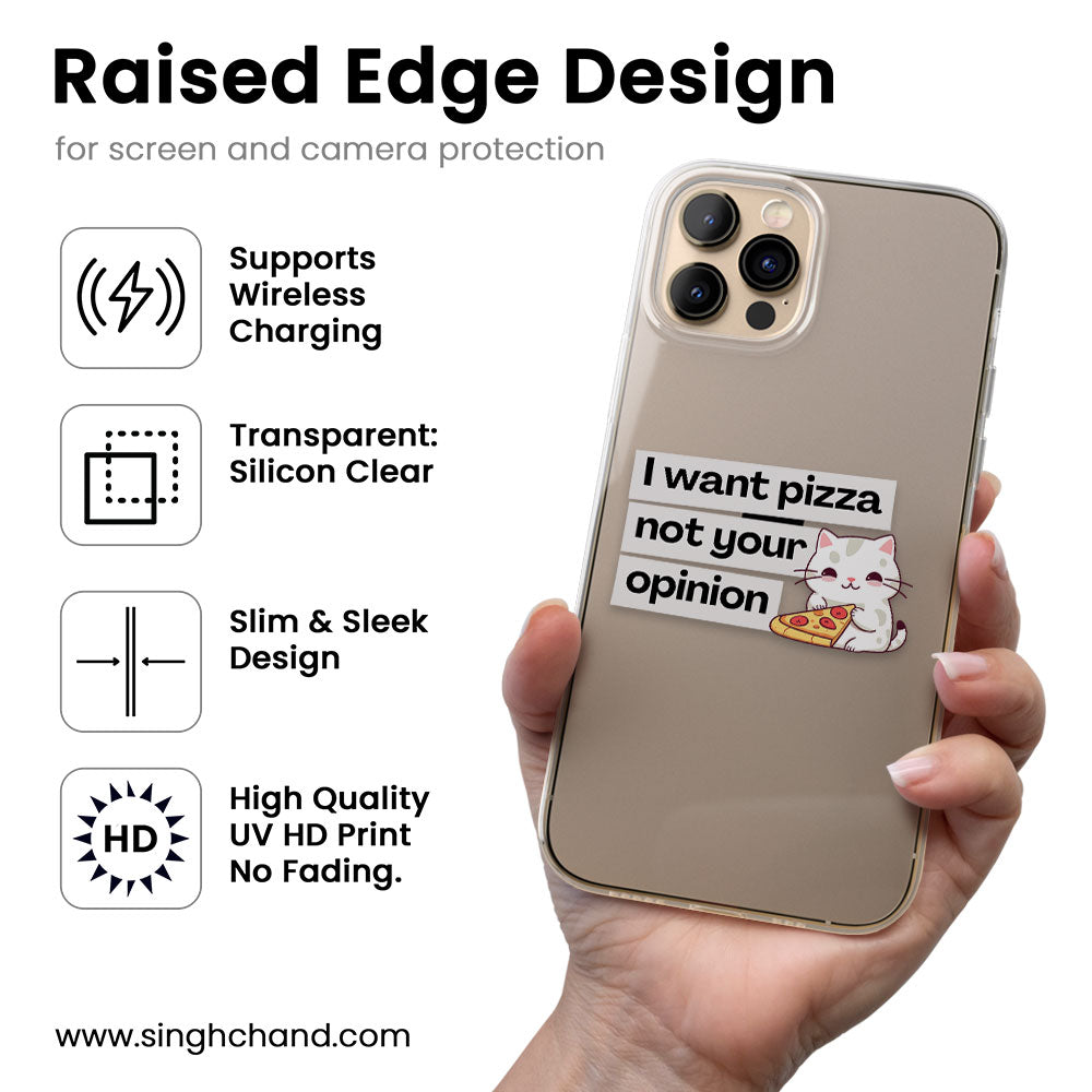 Enhance your phone’s style and protection with the SINGH & CHAND I want pizza not your opinion quote Silicone Phone Case. Designed for those who appreciate minimalism and durability, this case offers a slim and sleek design that fits comfortably in your hand. Made from premium quality silicone, it provides robust protection while showcasing your device’s original look. The high-quality UV HD print ensures vibrant, long-lasting colors that won’t fade, keeping your phone case looking fresh day after day. Compatible with all phone models, this transparent silicone phone case combines functionality with a timeless design, making it a perfect choice for those who value both style and protection.