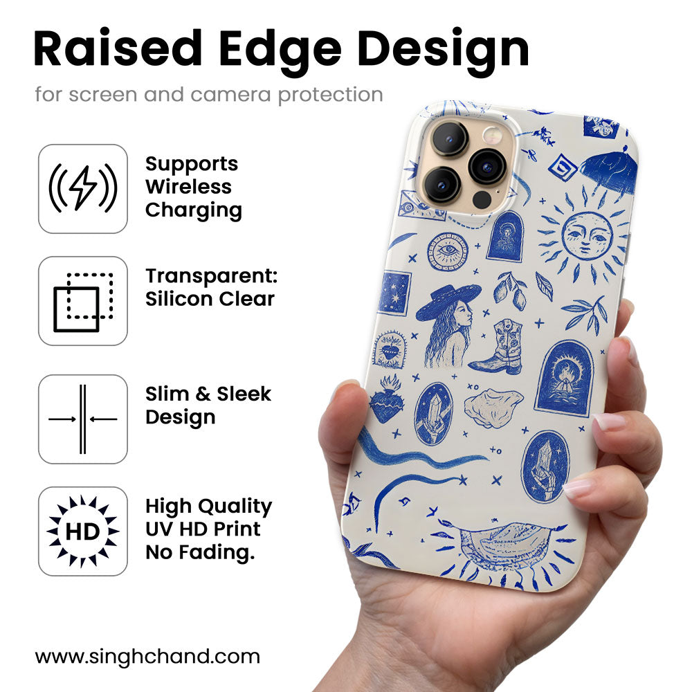 A surreal blend of desert dreams, divine eyes, and crystal visions β all in striking cobalt blue. Let the chaos of cowgirl soul, sacred symbols, and sunlit magic guard your phone in wild, whimsical style.